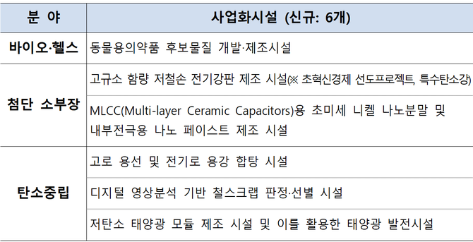 철강 등 주력산업 및 재생에너지 발전설비 투자 지원 등을 위한 사업화시설 대상이 193개까지 늘었다.