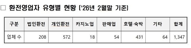 관세청은 지난해 10월부터 올해 2월까지 4개월간 전국 환전영업자 1347개 가운데 전국 78개 고위험 환전영업자를 대상으로 집중 단속을 실시한 결과, 31개 업체에서 총 51건의 위반 사항을 적발했다고 9일 밝혔다.