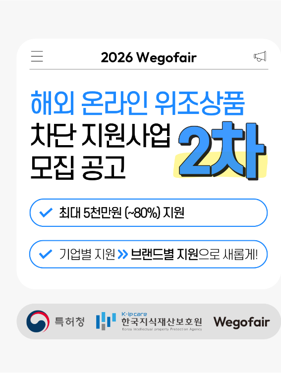 (조세금융신문=구재회 기자) 한국지식재산보호원의 ‘2026년 해외 온라인 위조상품 차단 지원사업’ 정기 2차 모집이 시작됐다.