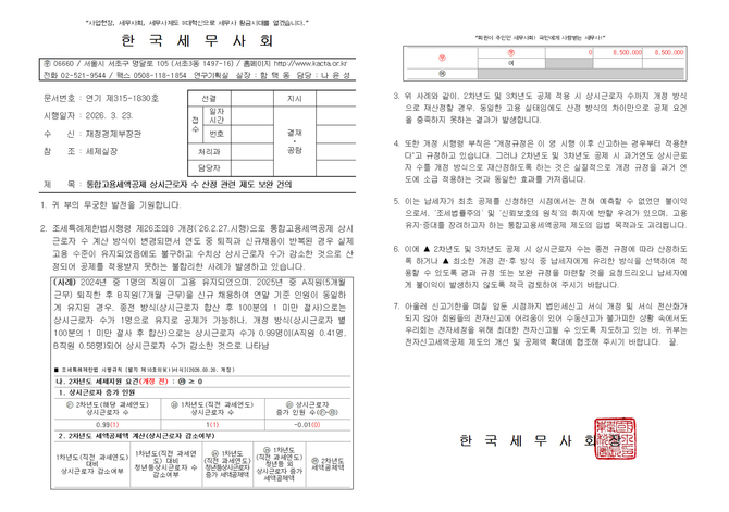재정당국과 국세청은 한국세무사회의 건의를 적극 수용했다. 과세당국은 2·3차년도 공제 적용 시 종전 계산 방식을 적용할 수 있도록 하는 명확한 지침을 마련해 즉각 회신했다.