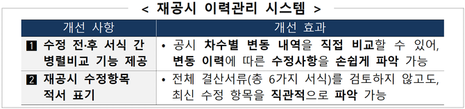 올해부터는 공시 후에 결산서류를 수정할 경우 변경 사항을 손쉽게 파악 가능하도록 ‘재공시 이력관리 시스템’을 도입할 예정이다.