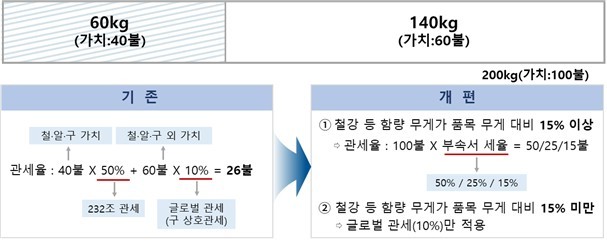 앞서 트럼프 행정부는 지난 6일(현지시간) 통관분부터 철강·알루미늄·구리 등 파생상품 관세 부과 방식 등을 제품 내 함량을 기준으로 부과하던 방식에서 전체 통관 가격을 기준으로 하기로 개편했다.