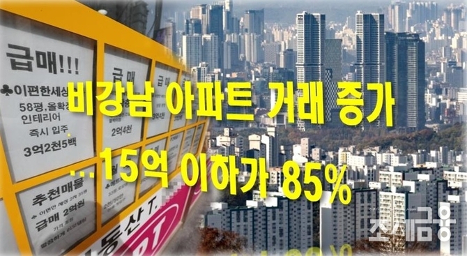 비강남권의 거래량이 늘면서 중저가 거래 비중은 더 커졌다. 15억원 이하 아파트 거래 비중은 올해 1월 79.0%였으나 2월에는 81.3%로, 3월 들어서는 85.4%로 증가했다. 15억원 이하 아파트는 주택담보대출이 최대 6억원까지 가능해 한시적 갭투자 기회를 이용한 매수가 많았다는 방증이다.