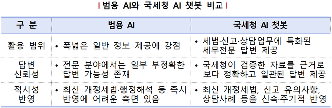 홈택스 AI 챗봇은 범용 AI 대비, 정확하고 일관된 답변을 제공할 수 있다는 것이 장점이다.