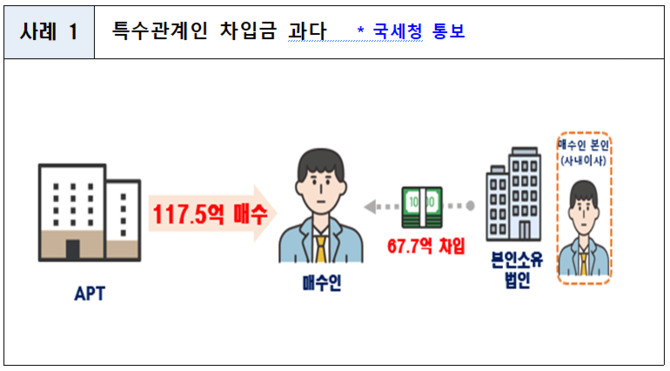 대표 사례를 보면 구조는 더 노골적이다. 서울의 한 아파트를 117억5000만원에 매수하면서 67억7000만원을 자신이 사내이사로 있는 법인에서 빌린 경우가 적발됐다. 개인 자금이 아닌 ‘회사 돈’으로 고가 주택을 취득한 구조다.