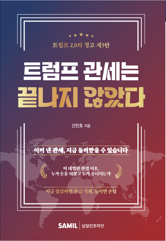 관세·통상·외환 분야 전문가인 신민호 대문관세법인 대표 관세사는 신간 '트럼프 관세는 끝나지 않았다'를 삼일인포마인을 통해 미국 통관 절차의 구조적 이해와 전략적 관세 환급 방안을 제시했다.