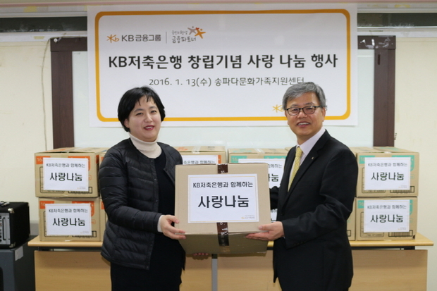 KB저축은행은 지난해부터 보건복지부가 설립한 송파구다문화가족지원센터와 결연을 맺고 정기적으로 생활용품, 장학금 등을 지원하고 있다.