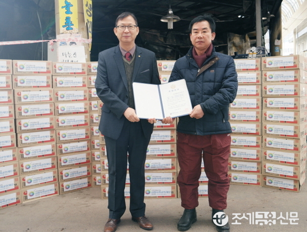(조세금융신문=김사선 기자) 신협사회공헌재단(이사장=문철상 신협중앙회장)과 신협 대구두손모아봉사단은 지난 1월 16일 발생한 화재로 인해 임시 장터에서 장사를 하고 있는 대구 팔달신시장 상인들을 찾아 위로와 함께 후원금 1천만 원과 5백만 원 상당의 물품(식료품)을 전달하였다.