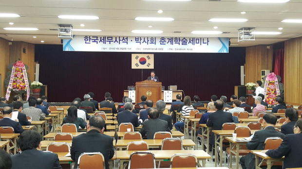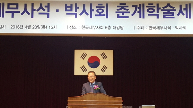 (조세금융신문=나홍선, 하지연 기자) 한국세무사석·박사회는 28일 오후 3시 한국세무사회관에서 춘계학술세미나를 개최했다. 이날 세미나에서 임채룡 회장은 인사말을 통해 “이번 세미나는 한국세무사석·박사회 개회 이래 최초로 개최하는 연구세미나”라며 “조세 분야 베테랑이라 자부하는 세무사 석·박사들이 세미나를 개최한 것은 매우 의미있는 일”이라고 말했다.
