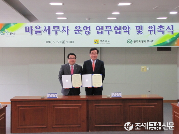 (조세금융신문=양학섭 기자)광주지방세무사회(회장 김영록)는 27일 전라남도(도지사 이낙연)와 마을세무사 운영 업무협약을 체결하였다.