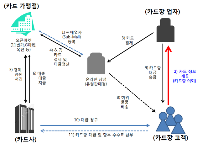 이상거래탐지시스템(FDS)에서 카드깡 의심거래를 발견하면 즉시 가맹점 현장실사를 통해 유령 가맹점 여부를 확인하고 문제가 있으면 즉시 카드거래 중단 조치를 취하기로 했다.