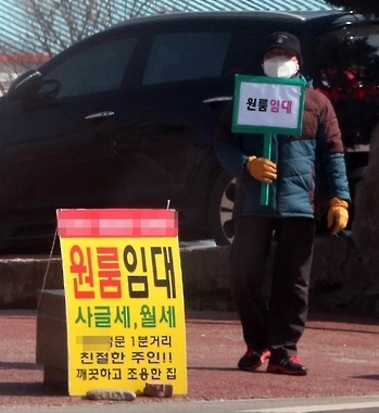 이들은 쌀쌀한 날씨에도 아랑곳하지 않고 목도리와 두꺼운 점퍼로 중무장한 채 한 손에는 '원룸'이라고 적힌 팻말을 들고 온종일 자리를 지켰다.'