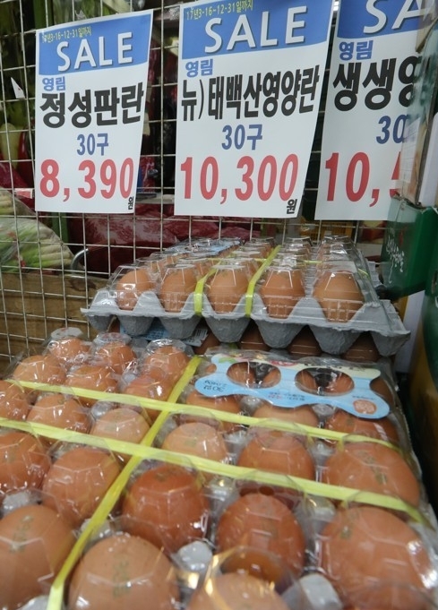 이는 평균 가격으로 AI 피해가 특히 컸던 서울·수도권 지역의 일부 슈퍼마켓에서는 최근 30개들이 계란 한 판 가격이 1만원을 넘는 경우가 속출하고 있다.