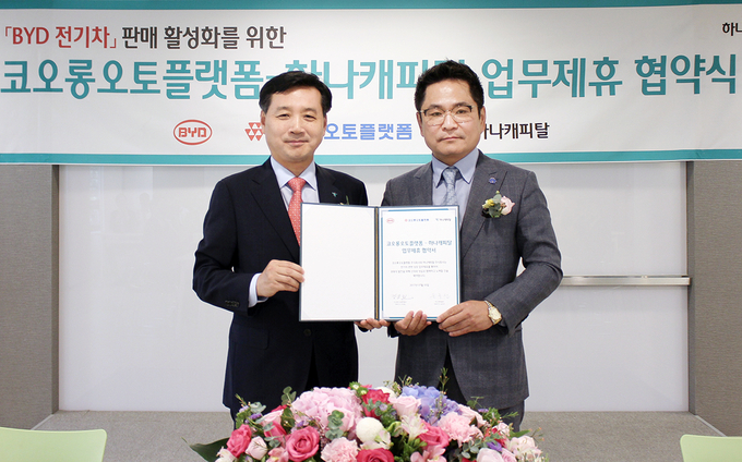 이번 업무제휴를 통해 하나캐피탈은 중국의 세계 최대 전기차 제조사인 ‘BYD’의 국내시장 진출에 맞춰 ‘BYD’의 국내 판권을 보유한 코오롱오토플랫폼과 공동 프로그램을 통해 친환경 전기차 보급을 위해 상호 협력할 계획이다.