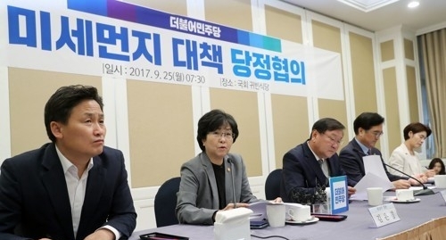김태년 정책위의장은 "민주당은 2016년 6월부터 미세먼지 저감 종합대책을 마련하고 관련 법률의 제·개정을 추진해왔다"며 "석탄 화력발전소, 경유차 등 발생원별 저감 대책과 민감 계층 보호 대책, 한중 국제 협력 등 종합대책이 필요하다"고 강조했다.'
