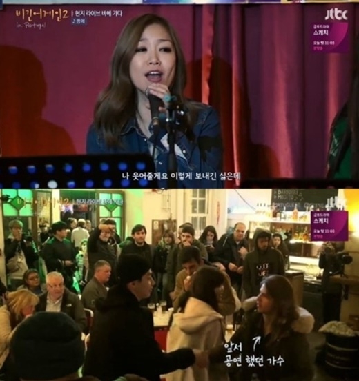 박정현은 1일 방송된 JTBC '비긴어게인2'에 출연해 포르투갈의 낯선 곳에서 다른 가수들과 함께 즉석 공연을 선보이며 눈길을 사로잡았다.