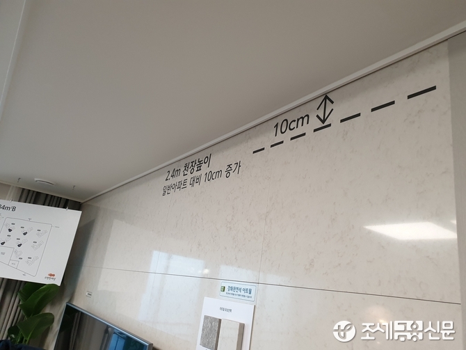 이어 그는 “아파트의 천정 높이는 2.4m로 일반아파트 대비 10cm를 높였고 등이 위치해 있는 부분을 더 높혀 확 트인 시아가 특징이다”고 강조했다.