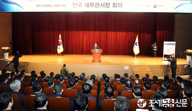 국세청은 28일 오전 세종시 국세청 본 청사에서 홍남기 부총리 겸 기획재정부 장관과 전국 세무관서장 등 293명이 참석한 가운데 ‘2019년도 전국 세무관서장 회의’를 열었다.