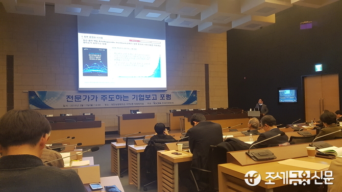 11일 서울 중구 대한상공회의소 의원회의실에서 열린 ‘전문가가 주도하는 기업보고 포럼’에 발표자로 나선 김정남 삼정회계법인 이사는 “기업의 비재무공시는 점차 의무화되는 추세”라며 “회계업계는 비재무공시를 활성화 시키고 효율성을 개선하는 등의 역할을 수행할 수 있을 것”이라고 전망했다.
