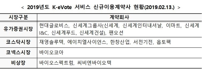 예탁원은 지난해부터 최근까지 신규로 계약한 상장사가 114개인 만큼 올해 전자투표를 이용하는 회사가 당연히 더 늘 것으로 보고 있다.