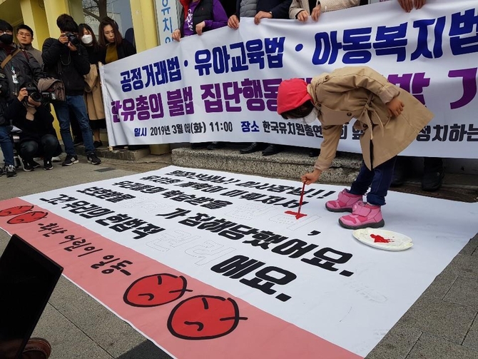 이들은 "한유총의 집단행동은 사업자 단체의 부당한 공동행위로, 공정거래법 위반"이라며 "불법적 휴원은 유아교육법 위반이고, 교육권 침해를 넘어 유아교육법과 아동복지법에 따른 아동학대 범죄로 볼 수 있다"고 강조했다.