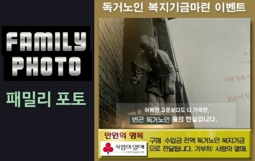 (조세금융신문=고은선 기자) 전국 작가의 모임 ‘패밀리포토’에서는 독거노인 복지기금마련을 위한 만원의 행복 이벤트를 실시한다고 밝혔다.