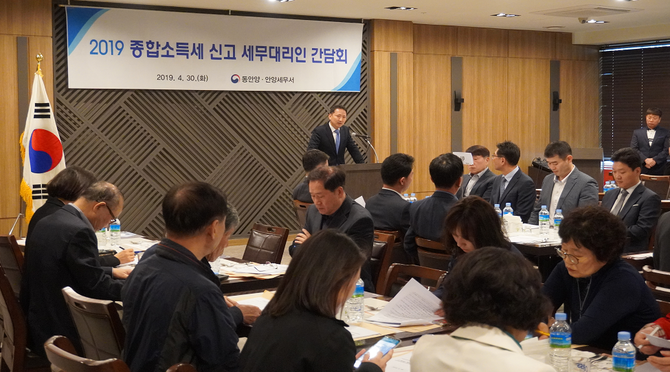 (조세금융신문=고승주 기자) 동안양세무서와 안양세무서가 5월 종합소득세 신고 시즌을 맞이해 지난달 30일 평촌 마벨리에에서 관내 세무사들을 초청해 신고 간담회를 열었다.