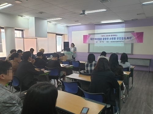 (조세금융신문=김종태 기자) 서울 대학로에 위치한 한국패션실용전문학교에서 NHN 고도와 함께하는 ‘패션 아이템을 활용한 쇼핑몰 창업절차’에 관한 특강이 지난 7일에 진행됐다.