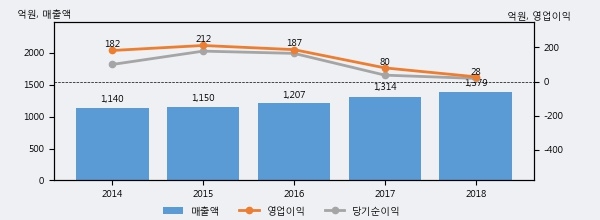 최근 3년간의 실적을 살펴보면 안정적 성장세를 보이고 있다. 최근 3년간 매출로 볼 때 매년 꾸준히 증가하고 있다. 다만 최근에 그 증가폭이 다소 감소하고 있다.
