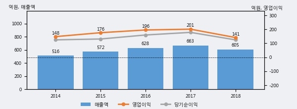 삼양옵틱스의 2018년 매출액은 전년대비 -8.8% 줄어든 605억원이고, 영업이익 역시 전년대비 -29.8% 줄어든 141억원을 기록했다. 이 회사의 매출액 증감률과 영업이익 증감률은 각각 코스닥 하위 25%, 하위 38%에 해당된다.