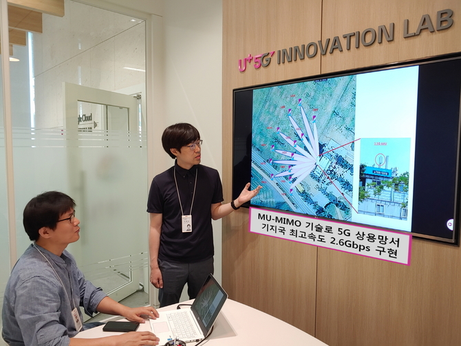 MU-MIMO는 5G 핵심 기술 중 하나로 여러 단말이 동시 접속해도 속도 저하를 막아주는 기술이다. 빔포밍을 통해 전파를 원하는 곳에, 원하는 모양으로 만들어 전송하기 때문에 전파 간섭을 줄여 고객 체감 속도를 높일 수 있고 기지국 데이터 처리 용량도 늘어난다.
