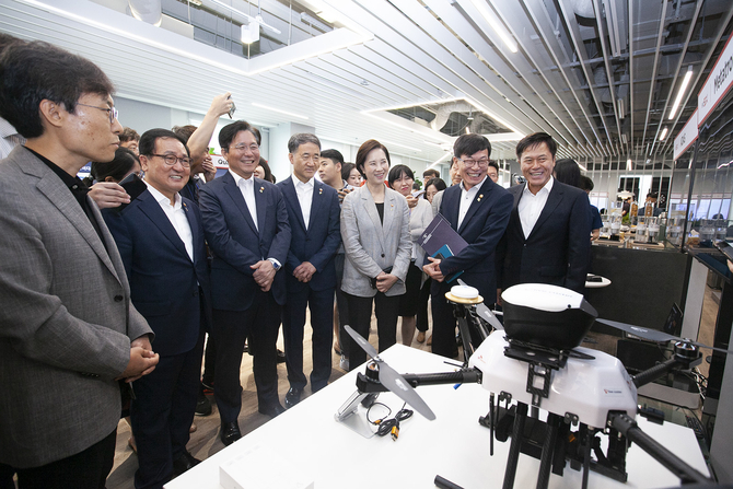 김상조 공정거래위원장은 “이 공간은 5G 최첨단 공간이면서 최태원 회장의 사회적 가치가 공존하는 공간이라는 생각이 든다”며 “다른 기업도 그렇고 혁신과 포용이 조화되는 세상 만들면 좋겠다”고 말했다.