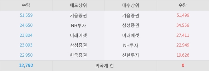 거래원 동향은 삼성증권, 미래에셋, NH투자 등이 매수 상위 목록에 나타나고 있다.