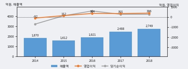 최근 3년간의 실적을 살펴보면 안정적 성장세를 보이고 있다. 최근 3년간 매출로 볼 때 매년 증가하고 있다. 다만 최근에 그 증가폭이 다소 감소하고 있다.