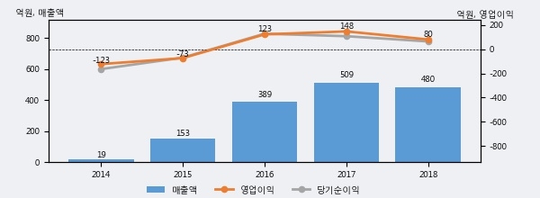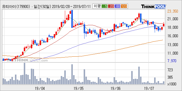 유티아이는 2018년 매출액 480억원과 영업이익 80억원을 기록했다. 전년대비 매출은 -5.8%, 영업이익은 -45.4% 각각 하락했다. 이 회사의 매출액 증감률과 영업이익 증감률은 각각 코스닥 하위 29%, 하위 32%에 해당된다.