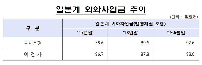 이 중 카드사 등 여신전문금융사와 국내 은행이 조달한 일본계 외화차입금은 6월 말 기준으로 20조2000억원에 달한다.