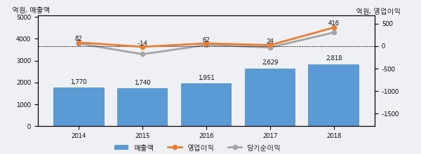 최근 3년간의 실적을 살펴보면 안정적 성장세를 보이고 있다. 최근 3년간 매출로 볼 때 매년 증가하고 있다. 다만 최근에 그 증가폭이 다소 감소하고 있다.