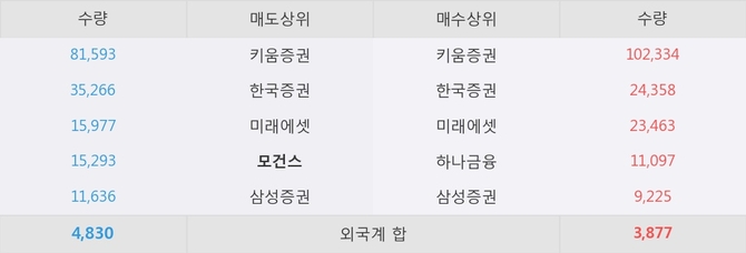 거래원 동향은 미래에셋, 하나금융, 삼성증권 등이 매수 상위 목록에 나타나고 있다. 한편, 매도 창구 상위에는 모건스가 눈에 띄고 있다.