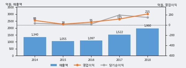 최근 3년간의 실적을 살펴보면 안정적 성장세를 보이고 있다. 최근 3년간 매출로 볼 때 매년 증가하고 있다. 다만 최근에 그 증가폭이 다소 감소하고 있다.