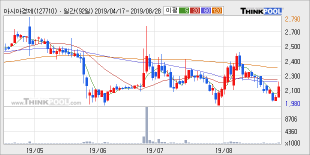 아시아경제의 2018년 매출액은 전년대비 6.8% 늘어난 384억원이고, 영업이익 또한 전년대비 12.5% 늘어난 58억원을 기록했다. 이 회사의 매출액 증감률과 영업이익 증감률은 각각 코스닥 상위 46%, 상위 38%에 해당된다.