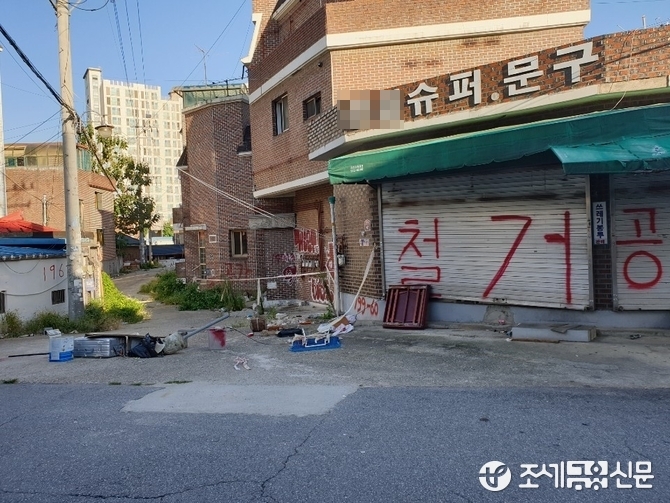 현재 용두6구역 재개발 현장에선 주민 간 갈등을 쉽게 찾아 볼 수 있다. 구역 내 건물에는 서로의 입장을 표현한 현수막이 곳곳에 즐비해 있다. 이주가 완료된 건물 외벽에는 빨간색 ‘철거’ 문구가 어지럽게 적혀 있다.