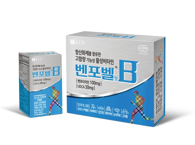 종근당의 ‘벤포벨’은 활성비타민인 벤포티아민을 포함한 비타민 B군 9종과 우르소데옥시콜산(UDCA), 코엔자임Q10, 비타민C, D, E, 아연 등을 복합적으로 함유해 하루 한 알로 우리 몸에 필요한 영양성분을 골고루 섭취할 수 있는 고함량 기능성 활성비타민 제품이다.