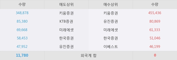이 시각 주요 거래원은 미래에셋, 키움증권, 유진증권 등이 매수 상위 창구에 자리하고 있다.