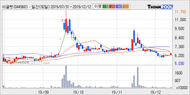 일봉 차트의 모습은 단기와 중기 모두 역배열 구간에서 하락 추세를 이어오다가 반등하는 모습이다. 최근 이 종목의 차트에서 최근 5일 매물대 돌파 등의 특이사항이 발생했다.