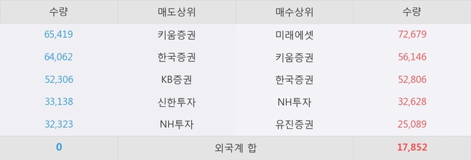 이 시각 주요 거래원은 NH투자, 키움증권, 한국증권 등이 매도 상위 창구에 자리하고 있다.