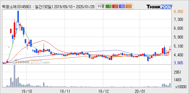 백광소재의 2018년 매출액은 2126억으로 전년대비 0.2% 상승했고, 영업이익 또한 88억으로 전년대비 19.7% 상승했다. 이 회사의 매출액 증감률과 영업이익 증감률은 각각 코스피 하위 36%, 상위 31%에 해당된다.