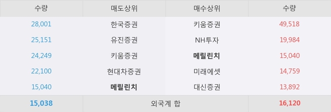 메릴린치가 매도상위 창구 5위를 기록중이고, 그 외에 한국증권, 유진증권 등이 매도 창구 상위에 위치하고 있다. 한편, 매수 창구 상위에는 메릴린치가 눈에 띄고 있다.