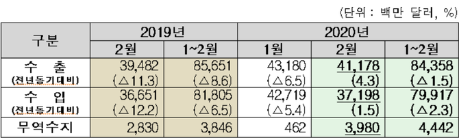 관세청은 16일 이같은 내용의 2월 월간 수출입 현황 확정치를 발표했다.