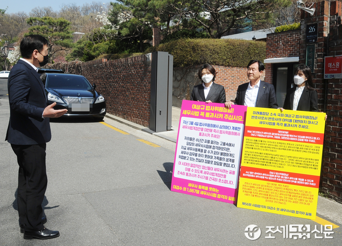 31일 오전 여상규 법사위원장 자택 앞에서 시위를 벌이고 있는 세무사들
