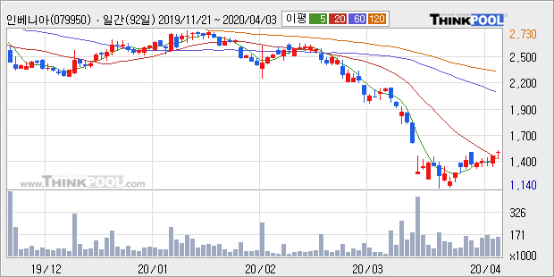 인베니아의 2019년 매출액은 1462억으로 전년대비 -15.4% 하락했고, 영업이익 역시 41억으로 전년대비 -43.3% 하락했다. 이 회사의 매출액 증감률과 영업이익 증감률은 각각 코스닥 하위 18%, 하위 30%에 해당된다.